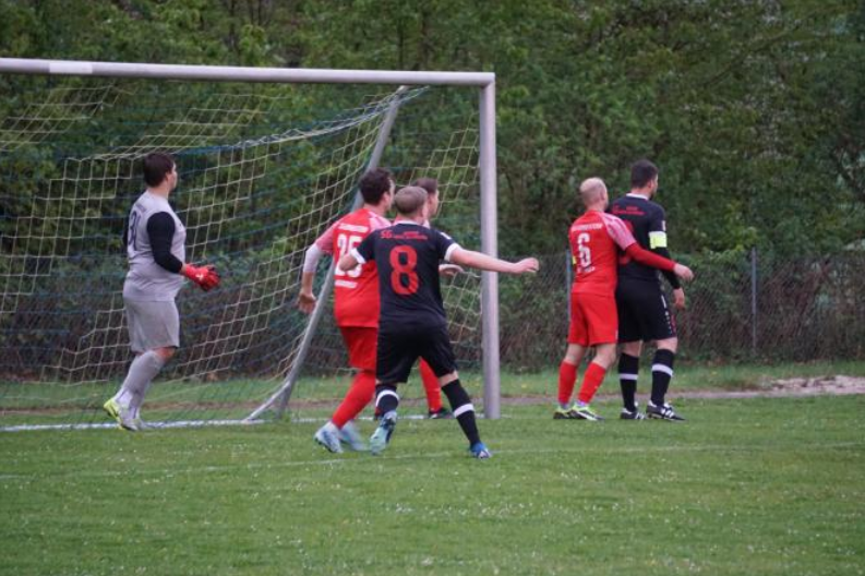 Möglichkeiten. Einen Kopfball von Ruben Schlüter im Getümmel kann die SG mit Glück